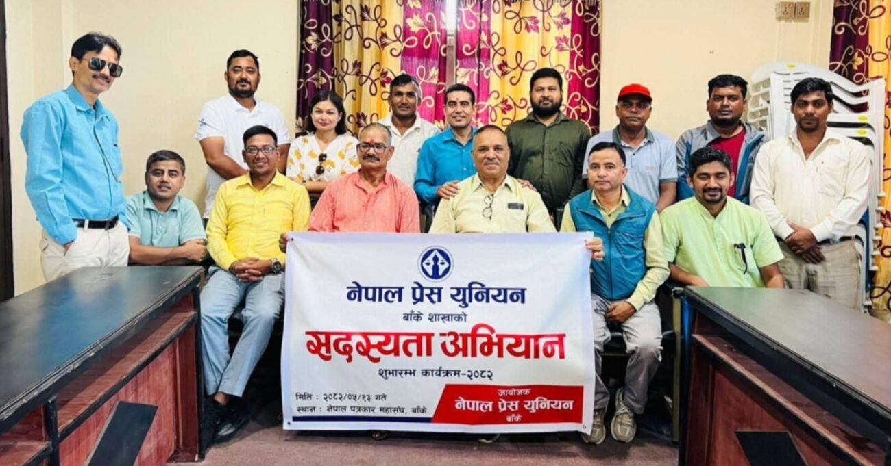 29 Aug समाचार, भर्खरै, समाचार नेपालगन्जमा प्रेस युनियनको १०० दिने अभियान सुरु, सदस्यता ‘शुद्धिकरण’मा जोड August 29, 2025 By Nepalgunj TV 0 comments १३ भदौ २०८२ शुक्रबार बाँके, नेपालगन्ज - नेपाल प्रेस युनियनका वरिष्ठ केन्द्रीय उपाध्यक्ष प्रेम केसीले प्रेस युनियन क्रियाशील पत्रका... Continue reading