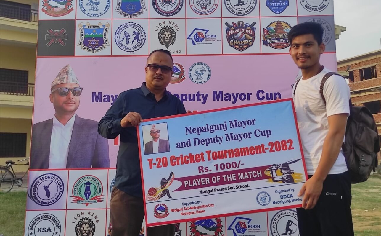 18 Mar खेलकुद, भर्खरै, समाचार, समाचार शानदार शतकसँगै ज्योति स्पोर्ट्सको धमाकेदार जित, ८३ रनले वार्ड–१२ पराजित March 18, 2026 By Nepalgunj TV 0 comments ०४, चैत २०८२ बुधबार बाँके, नेपालगञ्ज - नेपालगञ्जमा जारी मेयर कप (पुरुष) क्रिकेट प्रतियोगितामा ज्योति स्पोर्ट्स एकेडेमीले उत्कृष्ट प... Continue reading
