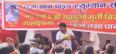 बाँके, नेपालगञ्ज – महान चाड बडा दशैं र श्री नवदुर्गा मूर्ति विसर्जनको अवसरमा समाजमा सद्भाव, भाइचार र मानवताको सन्देश प्रवाह गर्न राजा खान बिङ ह्युम्यान संस्थाले फलफुल तथा पानी वितरण कार्यक्रम सम्पन्न गरेको छ।