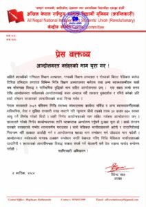 संगठनका अध्यक्ष विरेन्द्र शाहले जारी गरेको प्रेस वक्तव्यमा भनिएको छ,