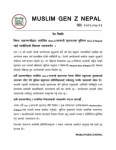 विज्ञप्तिमा भनिएको छ, “जेन–जी आन्दोलनको मतादेशअनुसार मुलुकले सर्वमान्य नयाँ सरकार पाएको छ। तर पछिल्ला दिनहरूमा भइरहेको राष्ट्रिय छलफल तथा परामर्श प्रक्रियामा मुस्लिम समुदाय र विशेषगरी मुस्लिम जेन–जी नेपाललाई बेवास्ता गरिएको देखिन्छ, जुन आन्दोलनको भावनाविपरीत छ।”