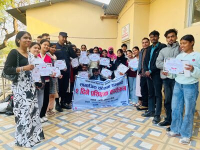 नेपालगञ्ज । नेपालगञ्ज नगर स्तरीय युवा सञ्जालको आयोजनामा सञ्चालन गरिएको “सामाजिक चेतना दुई दिने प्रशिक्षक कार्यक्रम” सफलतापूर्वक सम्पन्न भएको छ। कार्यक्रम नेपालगञ्ज उपमहानगरपालिका, सेभ द चिल्ड्रेन, फतिमा फाउन्डेसन, सामाजिक विकास मञ्च तथा Raja Khan Being Human Organization को सहकार्यमा आयोजना गरिएको थियो।