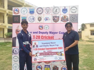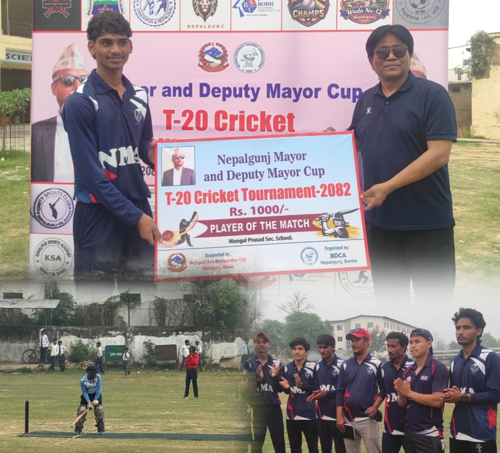 उत्कृष्ट अलराउन्ड प्रदर्शनका लागि पारस देवकोटा खेलको प्लेयर अफ द म्याच घोषित भए। प्रतियोगिता अन्तर्गत अन्य खेलहरू पनि नेपालगन्जमा जारी रहेका छन्।