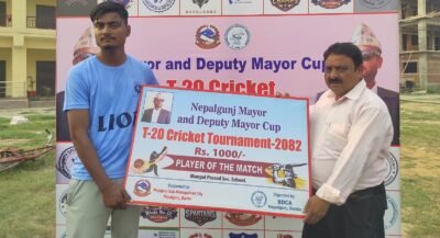 बाँके, नेपालगन्ज – नेपालगन्ज मेयर कप पुरुष क्रिकेट प्रतियोगिता अन्तर्गत बुधबार सम्पन्न खेलमा एनपीजे लायन किङ्स ले उत्कृष्ट प्रदर्शन गर्दै जुनियर क्याम्ब्रिज लाई १२ रनले पराजित गरेको छ।