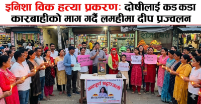 दाङ – सुर्खेतमा इनिशा विकको बलात्कारपछि हत्या भएको घटनाको विरोधमा दाङको लमहीमा दीप प्रज्वलन तथा खबरदारी कार्यक्रम गरिएको छ।