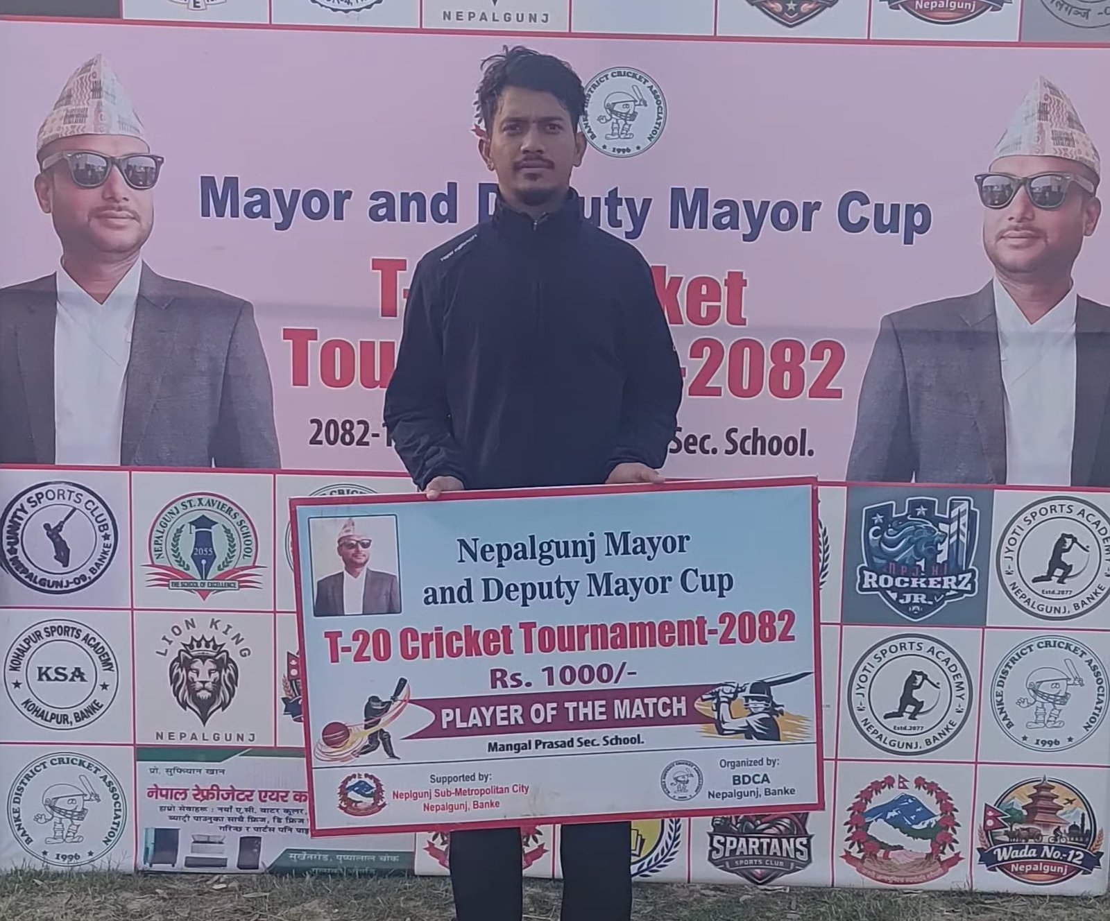 बाँके, नेपालगञ्ज – नेपालगञ्जमा जारी मेयर कप पुरुष क्रिकेट प्रतियोगिताअन्तर्गत सम्पन्न खेलमा ब्राइटल्यान्ड माध्यमिक विद्यालयले प्रभावशाली प्रदर्शन गर्दै नेपालगञ्ज मोडेल एकेडेमीलाई ९८ रनले पराजित गरेको छ। एम.पी. स्कुल मैदानमा भएको खेलमा ब्राइटल्यान्डले ब्याटिङ र बलिङ दुवै विभागमा उत्कृष्ट प्रदर्शन गर्दै दमदार जित दर्ता गरेको हो।