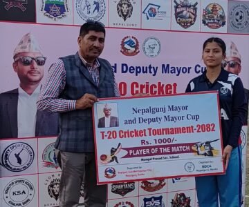 बाँके,नेपालगञ्ज — नेपालगञ्जमा जारी मेयर कप महिला क्रिकेट प्रतियोगिता अन्तर्गत भएको रोमाञ्चक खेलमा नेपालगञ्ज मोडेल एकेडेमी ले होल्याण्ड हाइस्कुल लाई ३ रनको झिनो अन्तरले पराजित गर्दै प्रतियोगितामा शानदार सुरुवात गरेको छ। अन्तिम ओभरसम्म उतारचढावपूर्ण बनेको खेलले दर्शकलाई भरपुर रोमाञ्च प्रदान गर्यो।