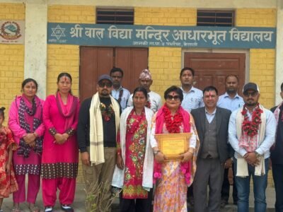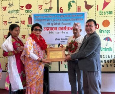 गोरखा भिमसेन थापा नगरपालिका–५ स्थायी घर भई हाल काठमाडौं महानगरपालिका–१६ खुसीबुँ (नयाँ बजार) निवासी श्रेष्ठले श्रीमानको १५औँ वार्षिक पुण्यतिथिको अवसर पारेर कैलालीको जानकी गाउँपालिका–५ पथरैयास्थित श्री बाल विद्या मन्दिर आधारभूत विद्यालयमा ‘Aquapure’ प्रणाली जडान गरी औपचारिक रूपमा हस्तान्तरण गर्नुभएको हो।